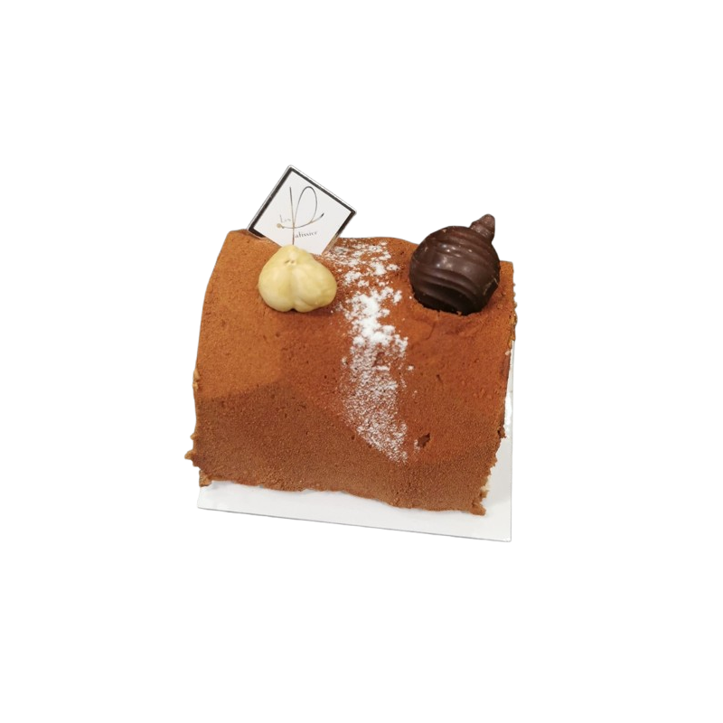 Bûchette au chocolat noir sur un praliné feuilletine et riz soufflé,