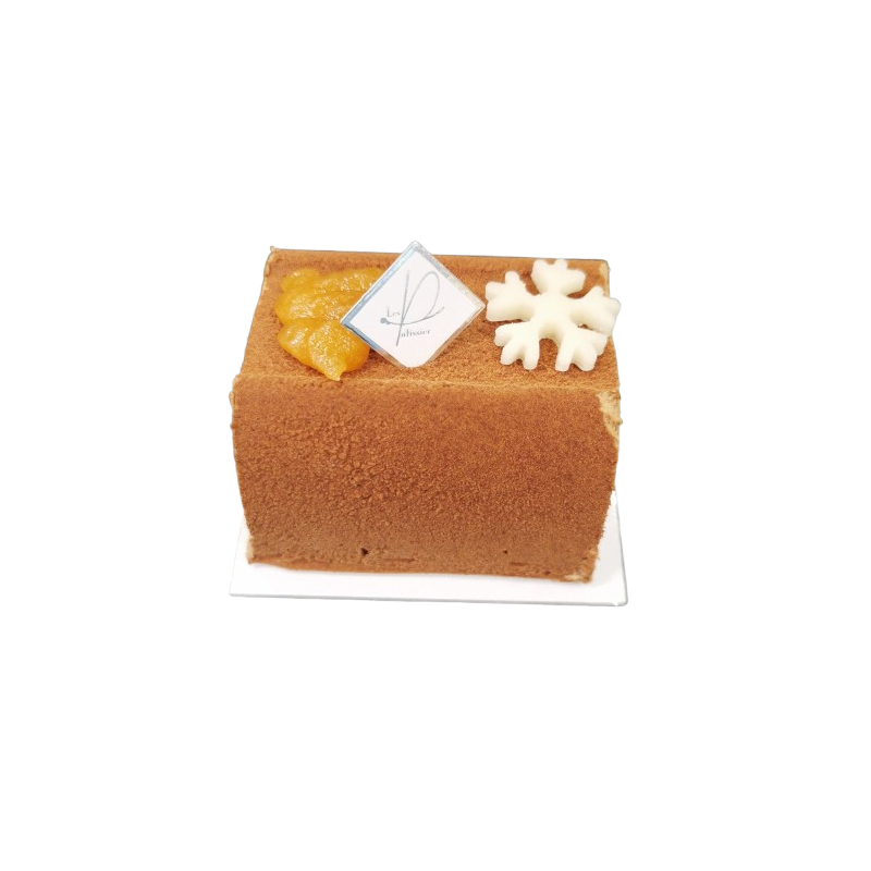Bûche au chocolat lait garnie d'une compotée d'abricots,