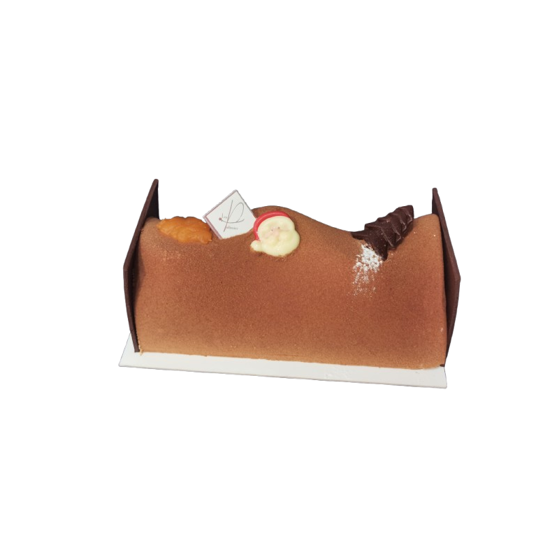 Bûche au chocolat lait garnie d'une compotée d'abricots,