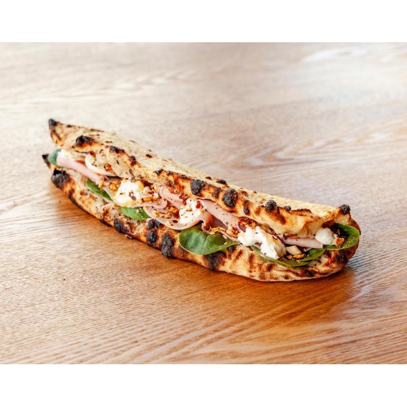 Mélange à base de truffes d’été et champignons, jambon blanc, burrata, noisettes torréfiées, pousses d'épinard, huile d’olive extra vierge bio.